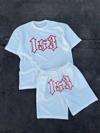 Erkek Nakış İşlemeli Şortlu Takım - Beyaz