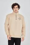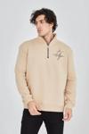 Erkek Yarım Fermuarlı Baskılı Sweat - Bej