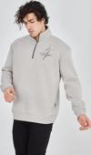 MDB Erkek Yarım Fermuarlı Baskılı weat Boyalı Gri
