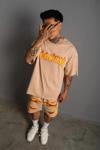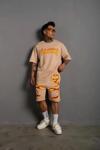Erkek Alev Baskılı İkili Şortlu Takım - Bej