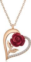 Gümüş Rose Kalpli Kırmızı Gül Kadın Kolye