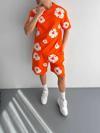 İki İplik Kumaş Baskılı T-shirt Şortlu Takım- Turuncu