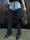 Jeans Kot Parçalı Palazzo Pantolon - Siyah