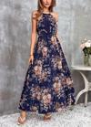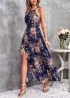 Kadın Açık Omuz Halter Yaka Beli Lastikli Büzgü Detay önden Yırtmaçlı çiçek Desenli Süprem Elbise