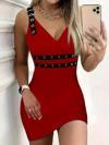 Kadın Askılı Derin V Yakalı Kuş Gözü Detaylı Janjan Krep Elbise