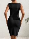 Kadın Askılı Kruvaze Yakalı Yandan Düğmeli önden Asimetrik Kesim Detaylı Kalın Fitilli Kaşkorse Elbise