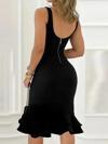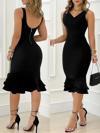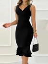 Kadın Askılı V Yaka Arkadan Fermuarlı Dalgıç Elbise
