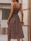 Kadın Askılı V Yakalı Beli Lastikli Yırtmaçlı Süprem Midi Elbise
