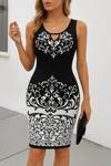 MDB Kadın Sıfır Kol Yakadan Halka Detaylı Desenli Kısa Bürümcük Elbise - Image 1
