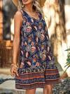 Kadın Askılı V Yakalı Fırfırlı Desenli Süprem Kısa Elbise