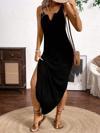 Kadın Askılı Yuvarlak Yaka Asimetrik Detaylı Viskon Elbise