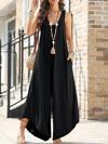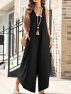 Kadın Askılı Yuvarlak Yaka Cepli Salaş Uzun Viskon Tulum