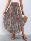 Kadın Beli Lastikli Bağcıklı Asimetrik Kesim Detaylı Desenli Bürümcük Etek