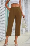 Kadın Beli Lastikli Düğme Ve Cep Detaylı Kapri Ithal Keten Pantolon