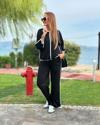 Kadın Bisiklet Yaka Truvakar Kol Biye Detay Bluz Ve Yüksek Bel Lastikli Pantolon Ikili Takım