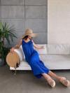 Kadın çan Dokuma Kumaş V Yaka Asimetrik Kesim Elbise