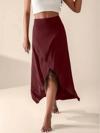 Kazax Uzun yırtmaçlı ince kumaş etek kırmızı