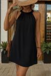 Kadın Daire Yakalı Omuzlardan Açık Sırt Dantel Detaylı Janjan Krep Elbise