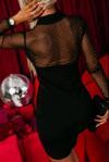 Kadın Dalgıç Kumaş Sim Ve Tül Detaylı Gömlek Yaka Elbise