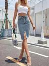 Kadın Elastik Bel Yırtık Kenar Detaylı Kot Etek