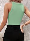Kadın Halter Kollu Yuvarlak Taşlı Yaka Damla Detaylı Kaşkorse Bluz
