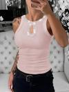 Kadın Halter Kollu Yuvarlak Taşlı Yaka Damla Detaylı Kaşkorse Bluz