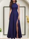Kadın Halter Yaka Derin Yırtmaç Detaylı Tam Boy Janjan Krep Abiye Elbise