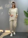 MDB Kadın Uzun Kollu Bisiklet Yaka Pulpayetli Viskon Iki Iplik Bluz Ve Pantolon Ikili Takım - Image 1