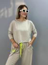 MDB Kadın Kayık Yaka Salaş Iki Iplik Bluz Ve şort Ikili Takım - Image 1