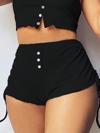 Kadın Ip Askılı Crop Bluz Ve Yanlardan Büzgülü Ikili Kaşkorse Short Takım