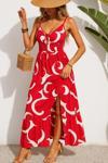 Kadın Ip Askılı Dekolteli Bağcıklı Yırtmaçlı Desenli Süprem Elbise