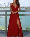 Kadın Ip Askılı Dekolteli Yırtmaç Detay Krep Elbise