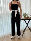 Kadın Ip Askılı Straplez Belden Kuşaklı Viskon Iki Iplik Tulum