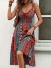 Kadın Ip Askılı V Yakalı Bağcıklı Beli Lastikli Desenli Süprem Elbise