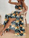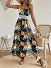 Kadın Ip Askılı V Yakalı Bel Güpür çiçek Desenli Yandan Yırtmaçlı Maksi Süprem Elbise