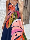 Kadın Ip Askılı V Yakalı Desenli Süprem Maxi Elbise