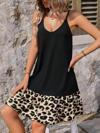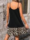 Kadın Ip Askılı Yuvarlak Yakalı Leopar Detaylı Elbise