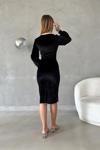 Kadın Kadife Kumaş Kruvaze Yaka Balon Kol Ve Yırtmaç Detaylı Midi Boy Elbise