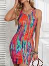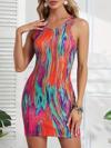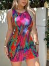 Kadın Kalın Askılı çok Renkli Dalgıç Mini Elbise