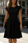 Kadın Kelebek Kollu Bisiklet Yakalı Pileli Ithal Krep Elbise