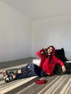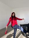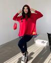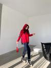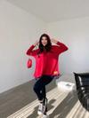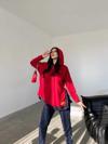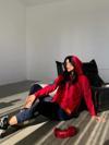 Kadın Kırmızı Kapşonlu Etek Ucu Detay Arma Ters Dikiş Gorunumlu Ikili Takım