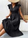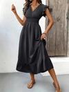 Kadın Kısa Kelebek Kollu Kruvaze Yakalı Beli Lastikli Aerobin Elbise