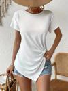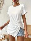 Kadın Kısa Kollu Asimetrik Kesim Beli Büzgü Düğüm Detay Viskon Bluz