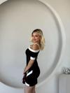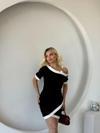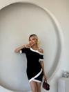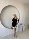 Kadın Kısa Kollu Asimetrik Kesim Yaka şerit Ve Aksesuar Detaylı Modal Elbise