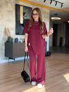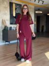 Kadın Kısa Kollu Bisiklet Yaka Asimetrik Viskon Iki Iplik Bluz Ve Pantolon Ikili Takım