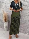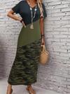 Kadın Kısa Kollu Bisiklet Yaka çok Renkli Maksi Viskon Elbise