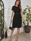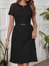 Kadın Kısa Kollu Bisiklet Yaka Dantel Detaylı Düğmeli Modal Elbise