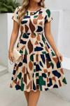 Kadın Kısa Kollu Bisiklet Yaka Desenli Fırfırlı Süprem Elbise