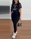 Kadın Kısa Kollu Bisiklet Yaka File Detaylı Viskon Iki Iplik Krop Ve Eşofman Altı Ikili Takım