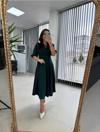 Kadın Uzun Kollu Kruvaze Yaka Dalgıç Krep Midi Boy Elbise - Image 1